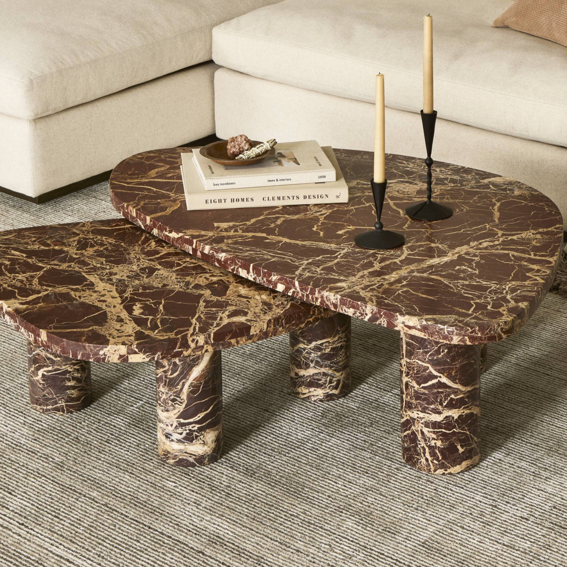 The beautiful pillar-style legs of the Zion Coffee Table compliments its organically shaped table tops curating beautiful shapes and depth. Available is a wide range of colours, finishes and varieties, the options with these tables are endless.