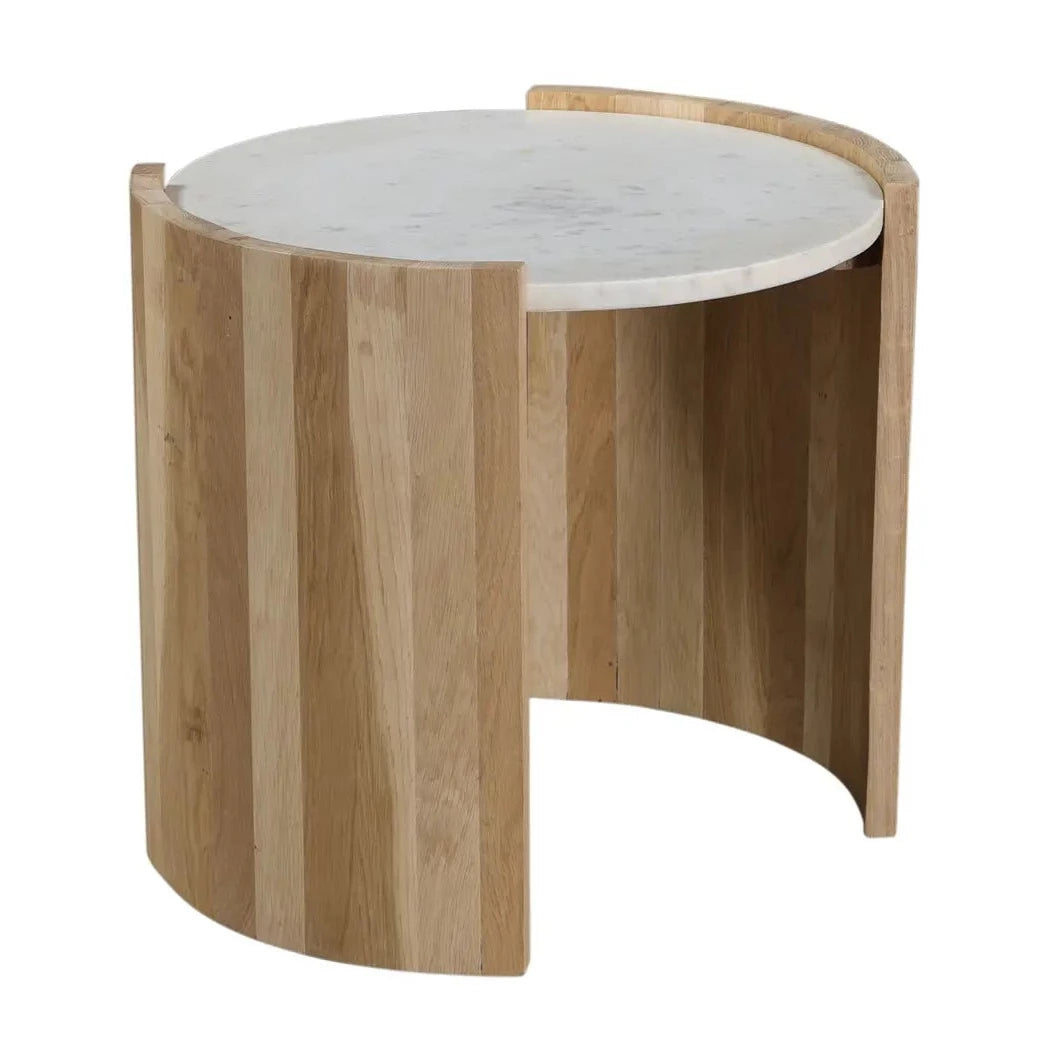 Unquestionably stylish, this design is a perfect choice for enhancing your living space. Whether you're aiming to introduce a sculptural element or a sinuous accent, the Scandi Marble & Oak Side Table effortlessly blends into any room. Its natural characteristics not only make it a functional piece but also add to its overall charm. Elevate your interior design with the Scandi Marble & Oak Side Table and embrace the beauty of modern sophistication.
